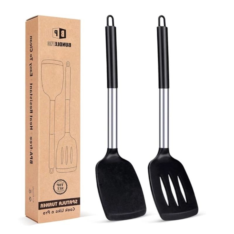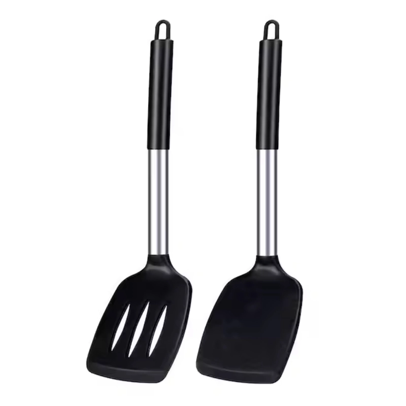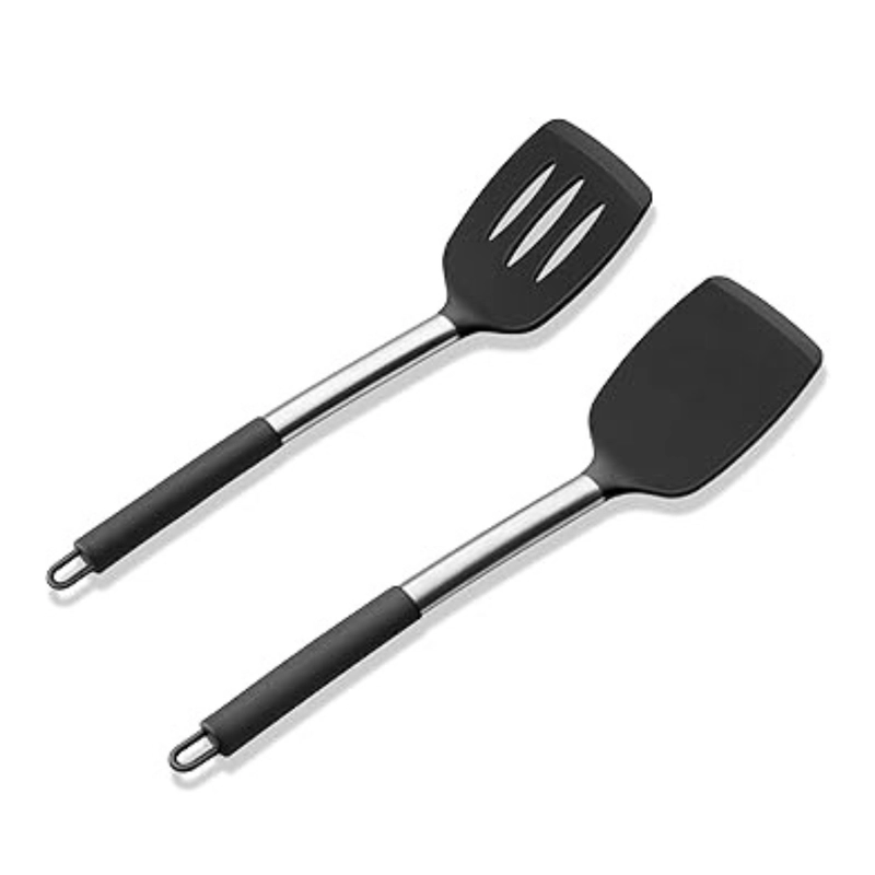 Paquete de 2 espátulas giratorias de silicona sólidas y ranuradas, utensilios de cocina antiadherentes altamente resistentes al calor