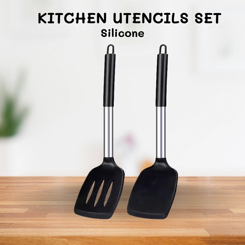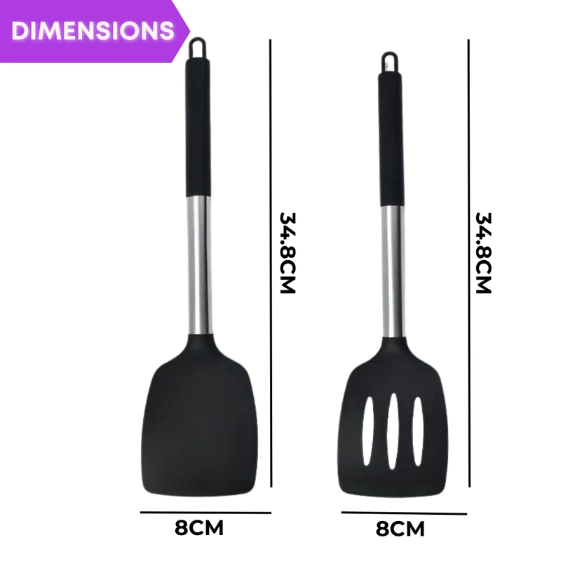 Juego de utensilios de cocina de silicona — Herramientas de cocina resistentes al calor (negro)
