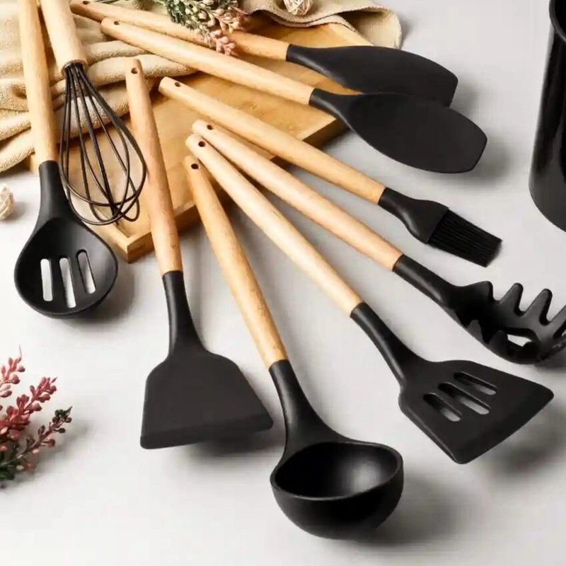 Juego de utensilios de silicona de 12 piezas con soporte, herramientas de cocina antiadherentes para uso diario en la cocina